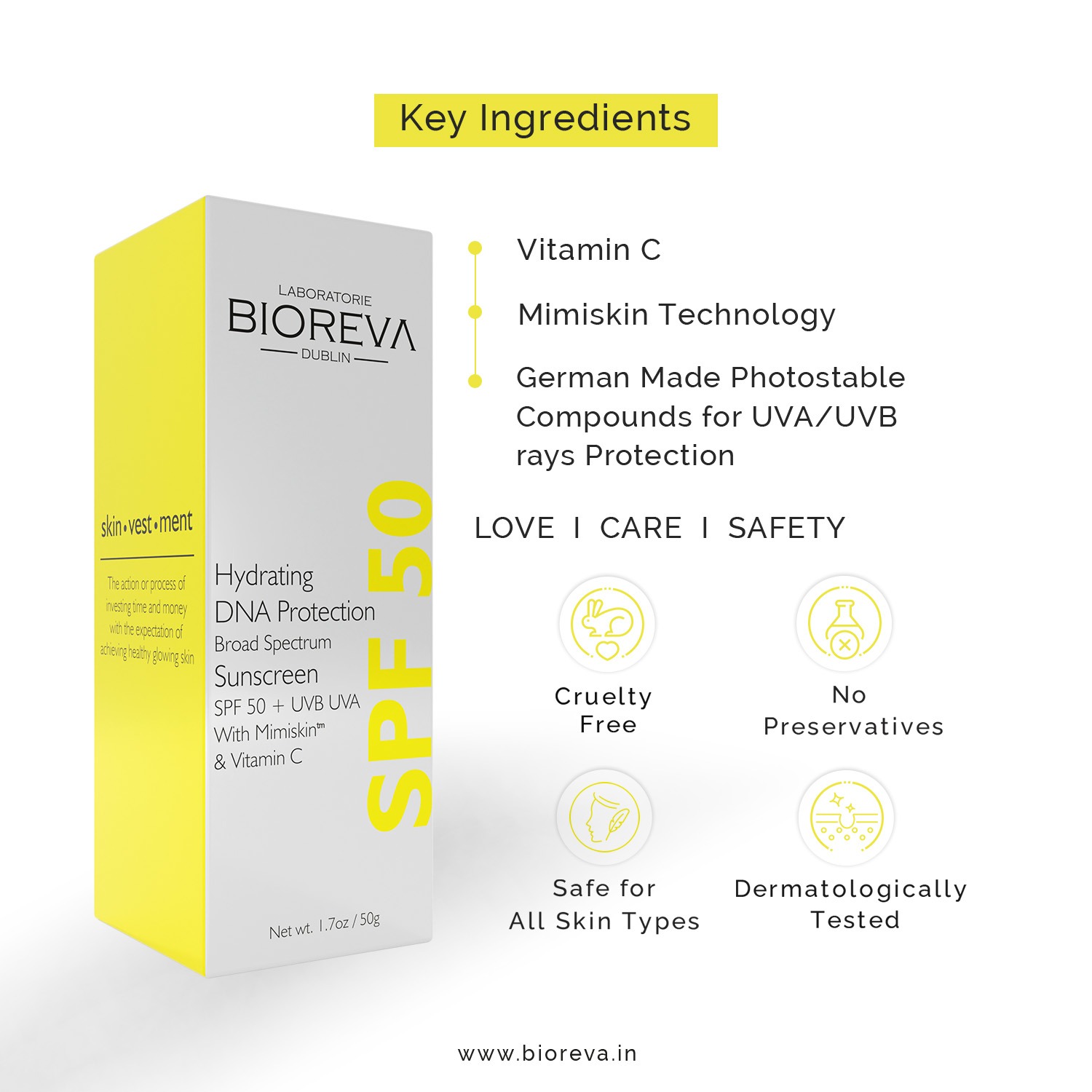 Bioreva SPF 50 make skin hydrated and healthy throughout the day, and provide: