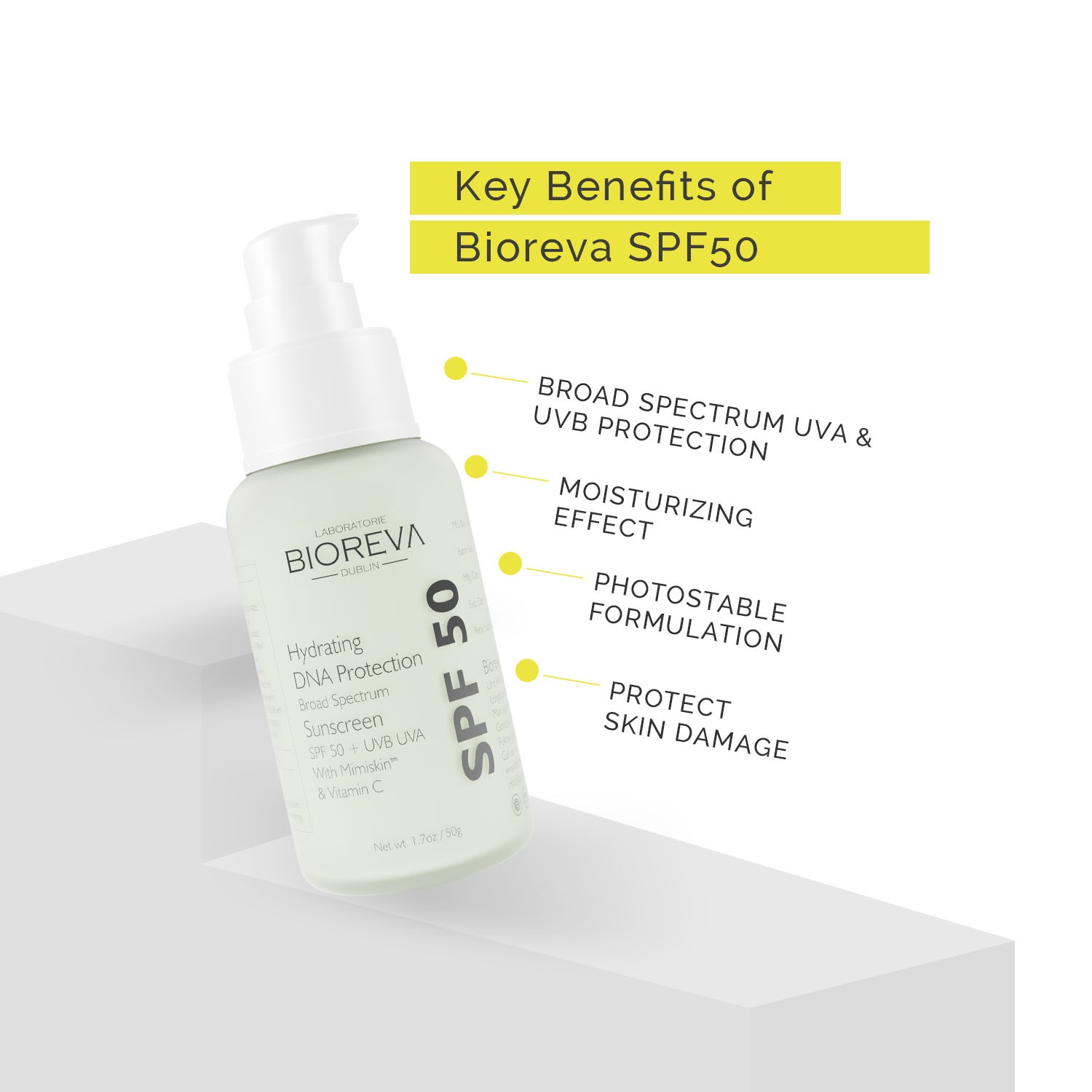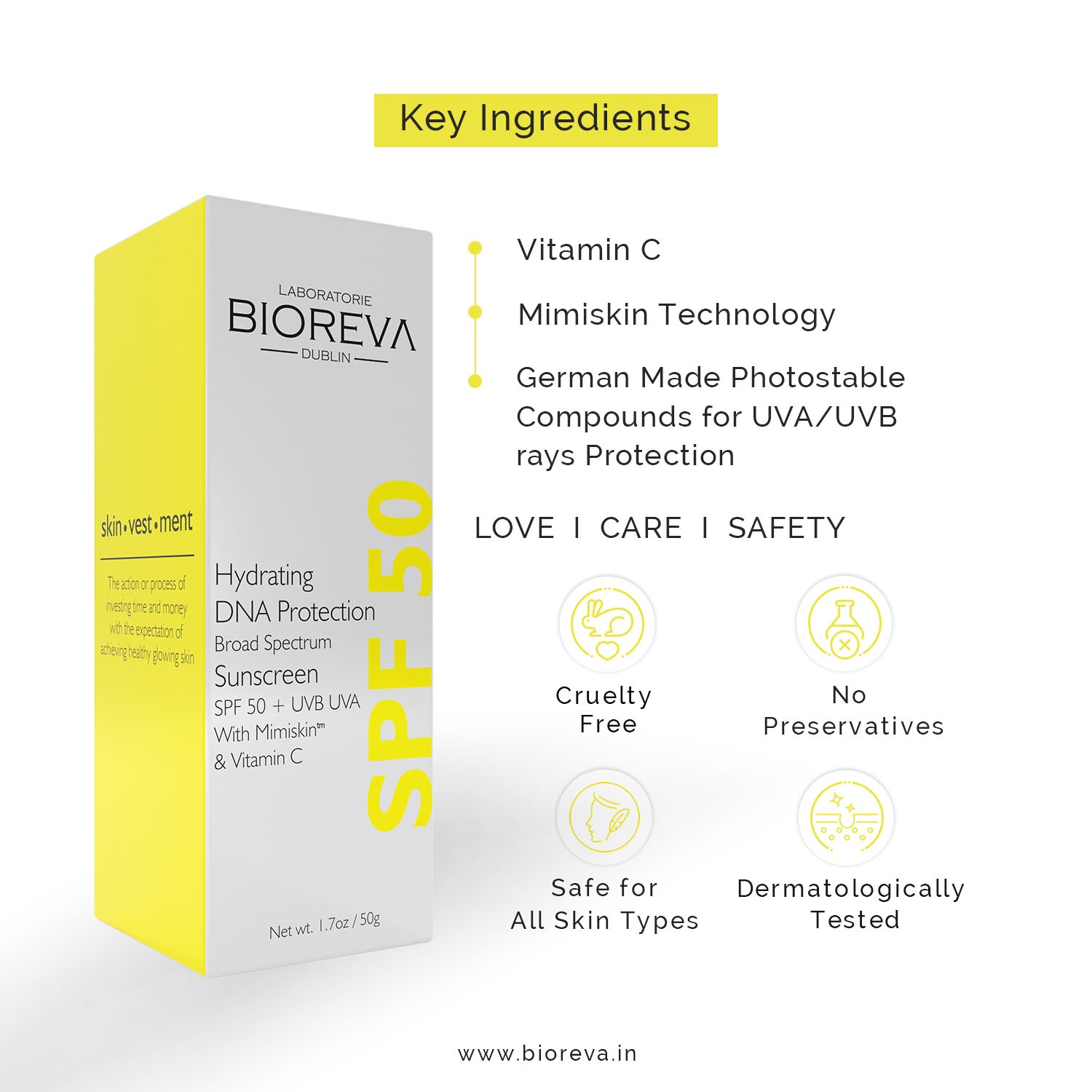 Bioreva SPF 50 make skin hydrated and healthy throughout the day, and provide: